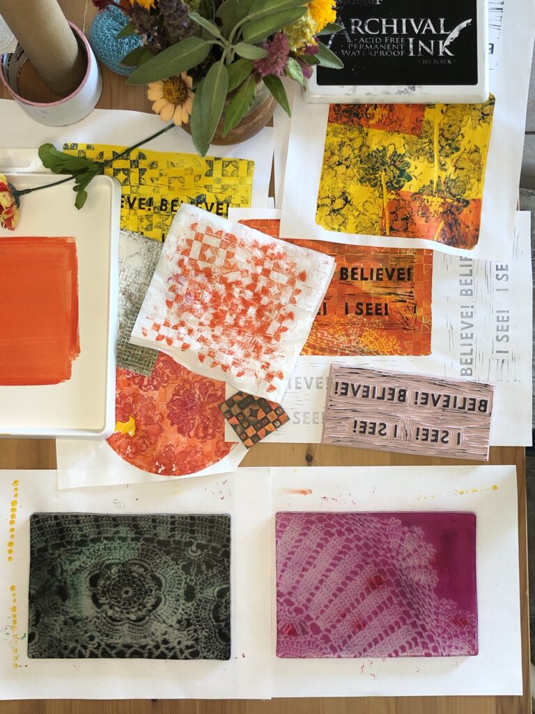 I know most of my readers are likely unfamiliar with Kings Kaleidoscope. So I’ve also created some monoprints for those of you who can relate to my story and have experienced similar journeys in your faith. These pieces were also inspired by Kings Kaleidoscope, but from more familiar lyrics. The band recently released an arrangement of “Amazing Grace” that added an emphasis on our faith turning to sight with the words “Believe! Believe! I see! I see!” being repeated throughout the hymn.