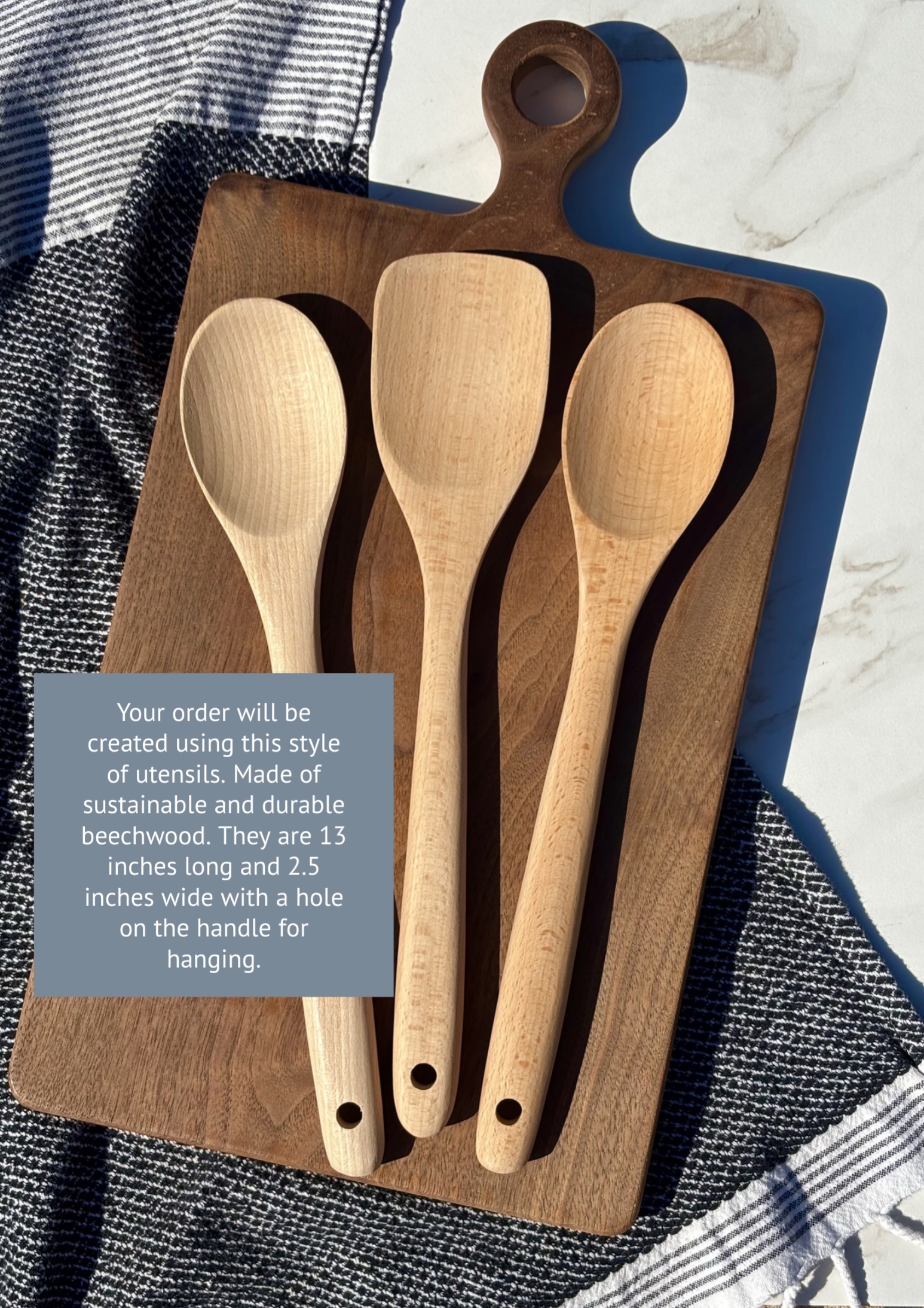 Intended for daily use, this set of engraved spoons brings functional style to every kitchen! Add a personal touch to the most important room in your home with these essential cooking utensils!