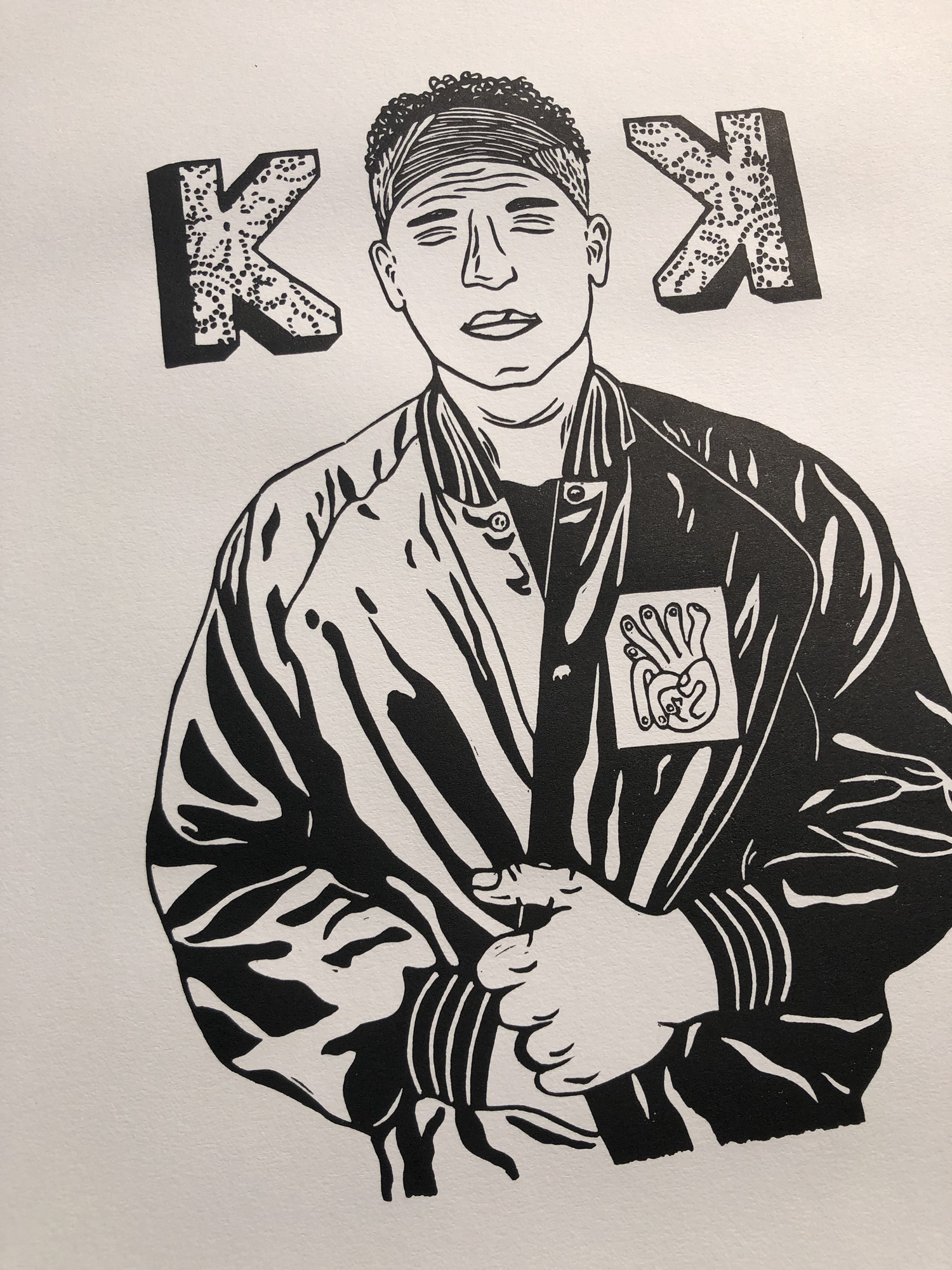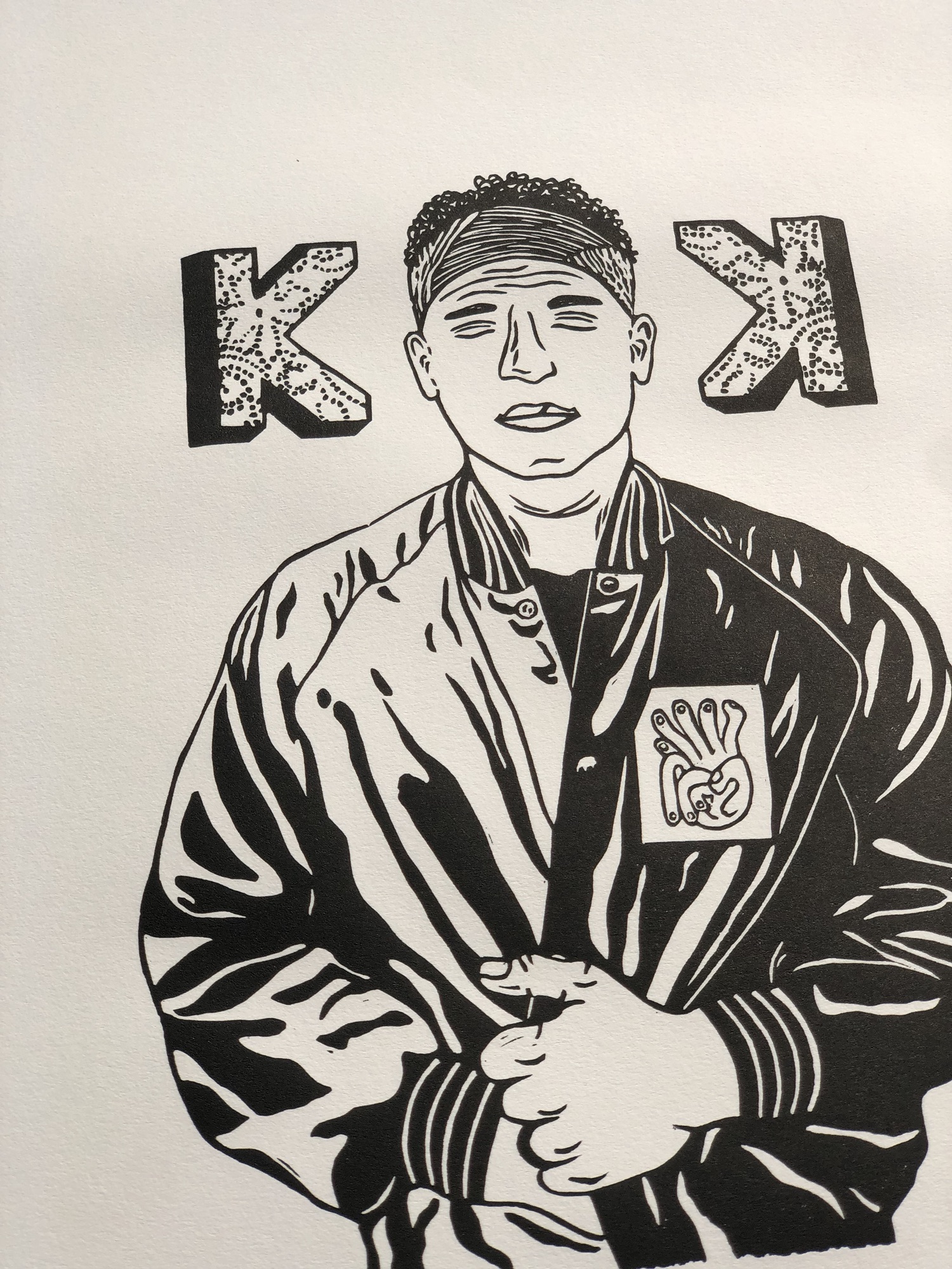 I made this piece for myself and for all the other Kings K fans out there! The design includes references to several Kings Kaleidoscope albums. You’ll see this in the lace inside the Ks from “Baptized Imagination”, Chad’s jacket from “Beauty Between”, and the two mirrored Ks from “Becoming Who We Are”.
