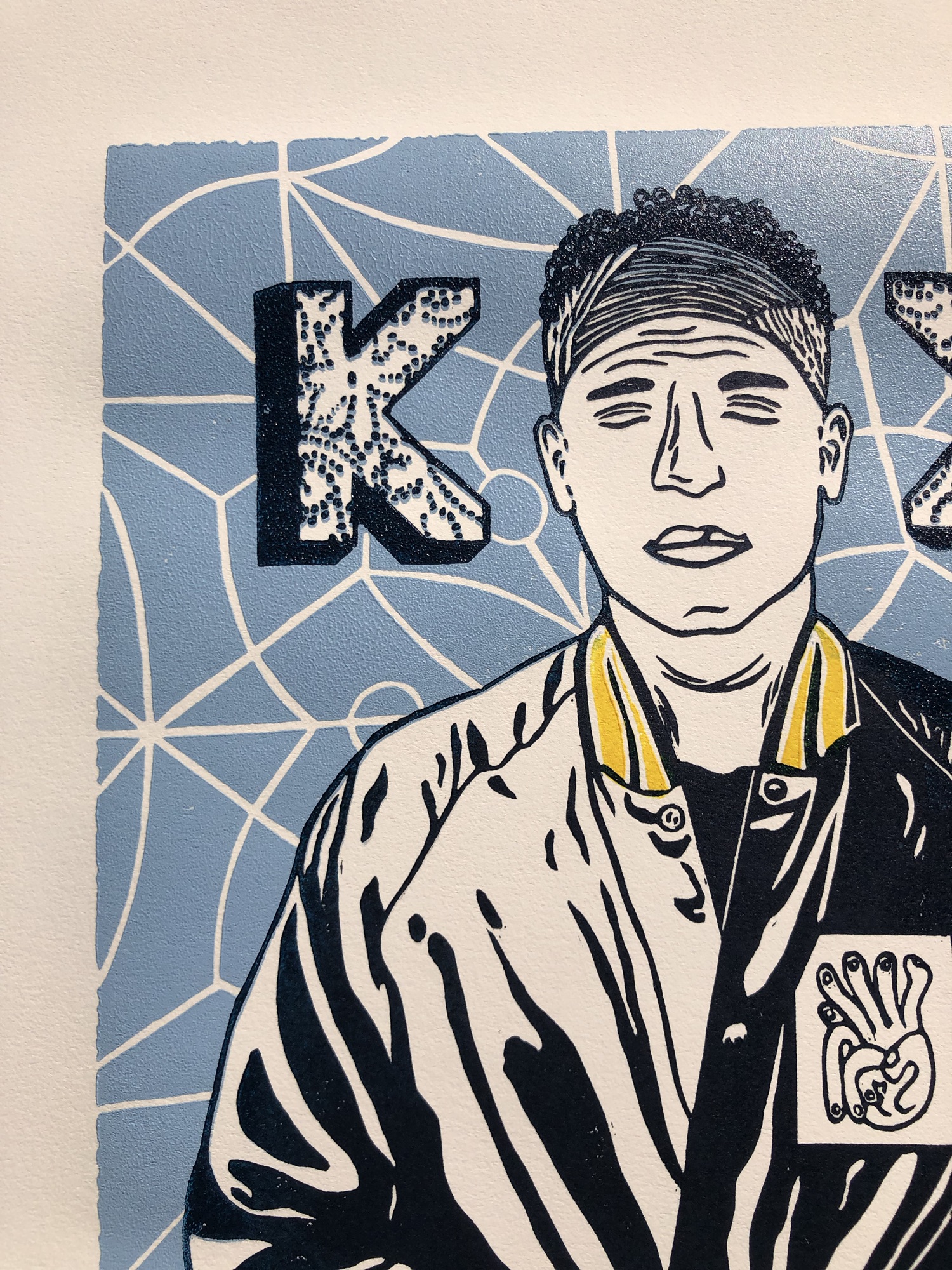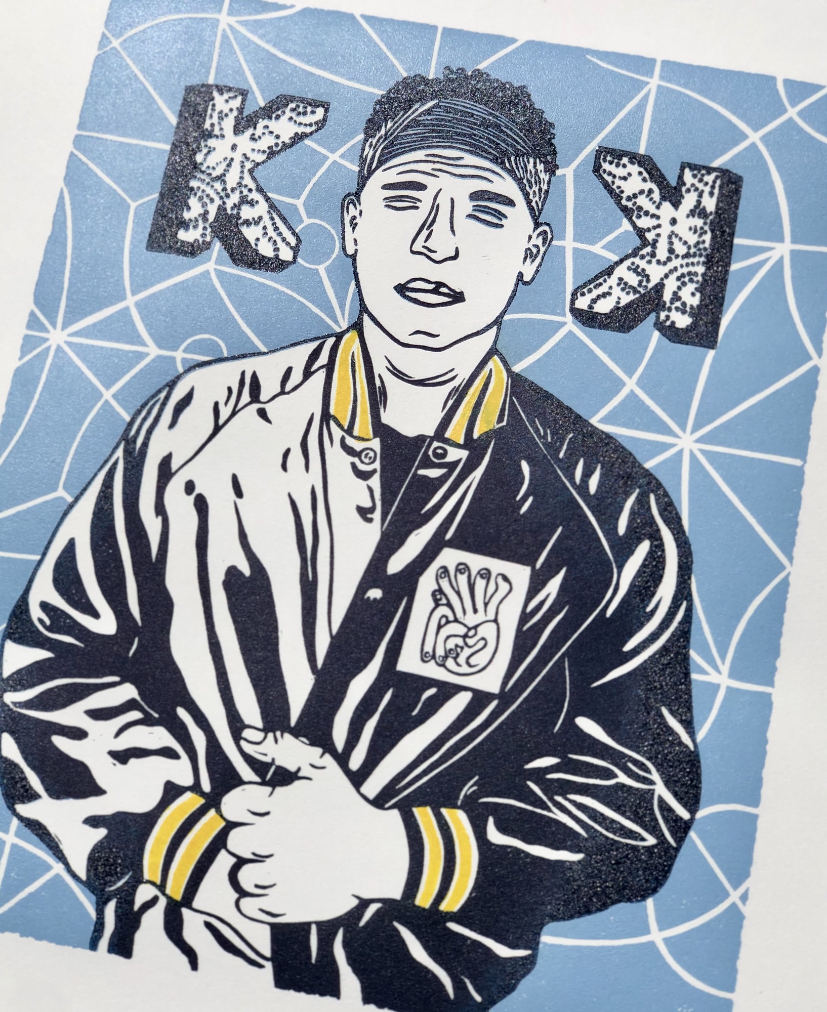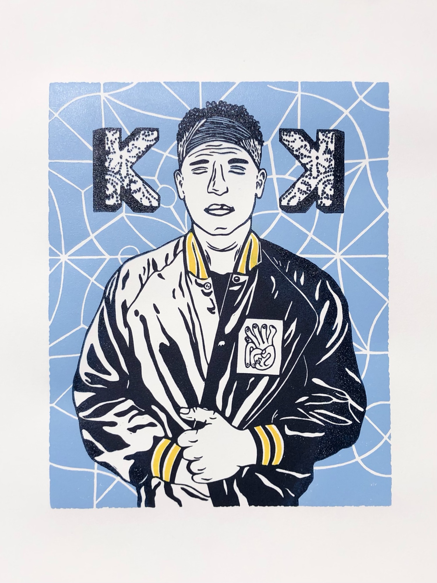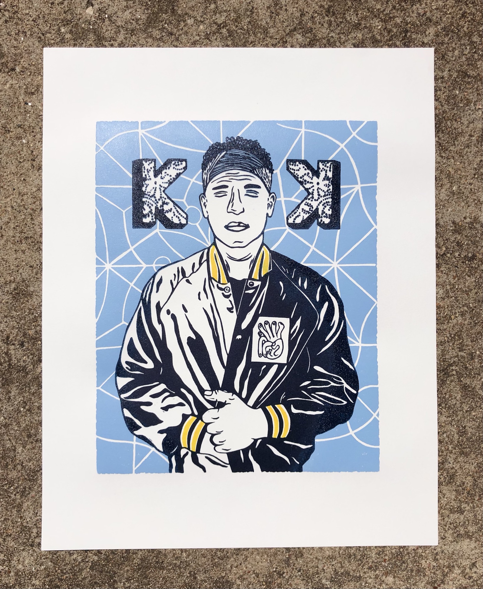 I made this piece for myself and for all the other Kings K fans out there! During the design process, I decided to include references to several Kings Kaleidoscope albums. You’ll see this in the mirror design in the background from “Kings Kaleidoscope”, the lace inside the Ks from “Baptized Imagination”, the title of the piece, “Breaking & Becoming” from “Zeal” (About to Break), Chad’s jacket from “Beauty Between”, and the two mirrored Ks from “Becoming Who We Are”.
