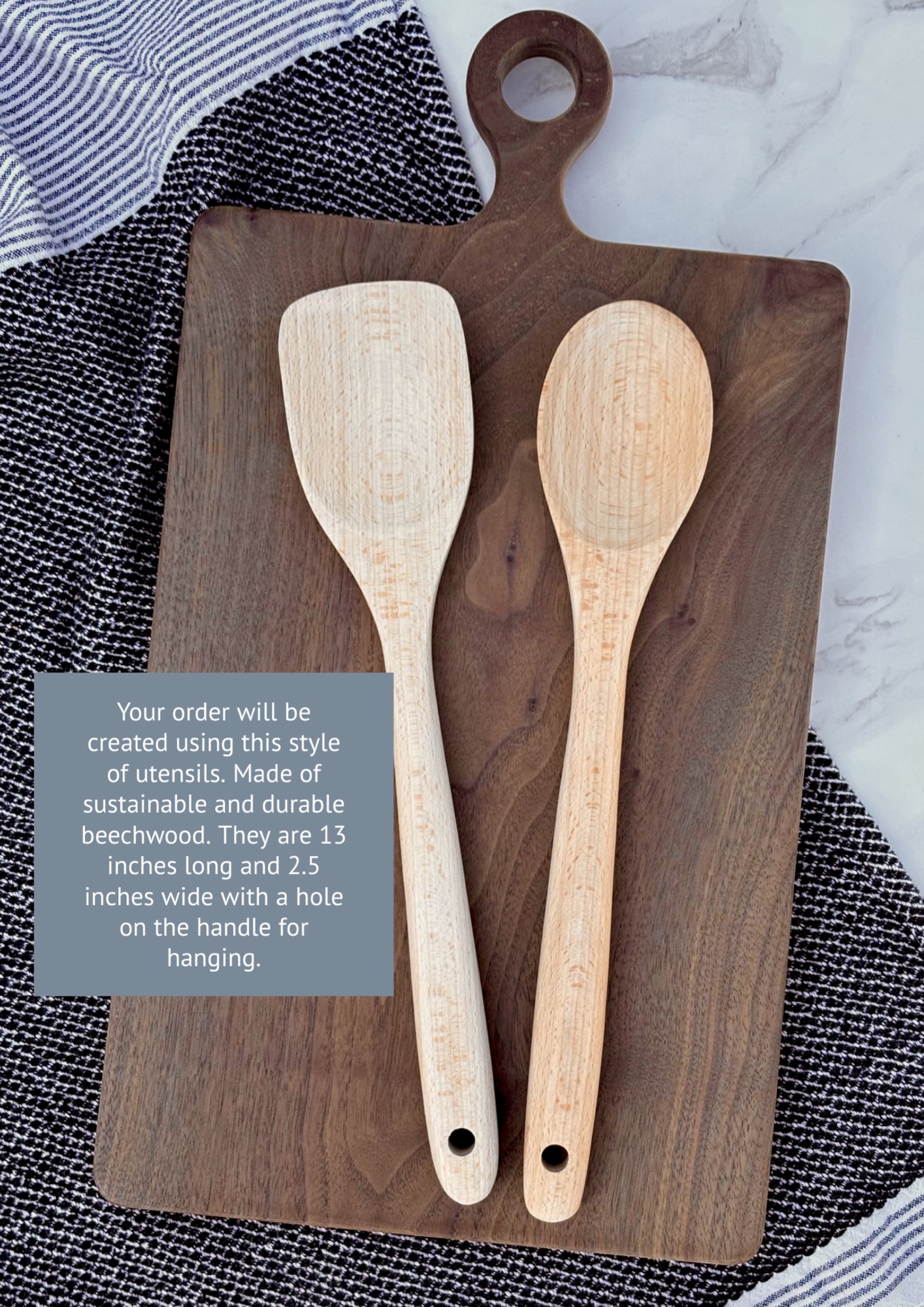 Intended for daily use, this set of engraved spoons brings functional style to every kitchen! Add a personal touch to the most important room in your home with these essential cooking utensils!